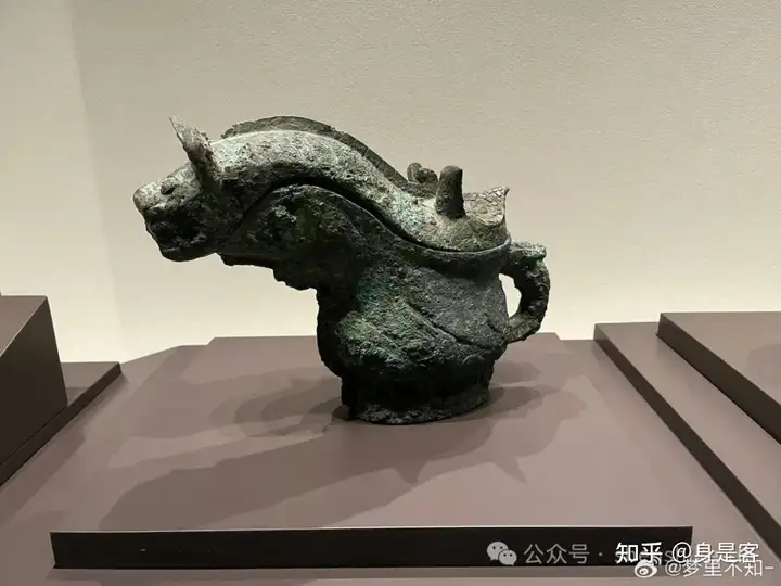 (图:商代的妇好圈足觥(1976年安阳殷墟妇好墓出土)。觥前端一只老虎,把手处一只鸱鸮(chīxiāo, 猫头鹰)。)