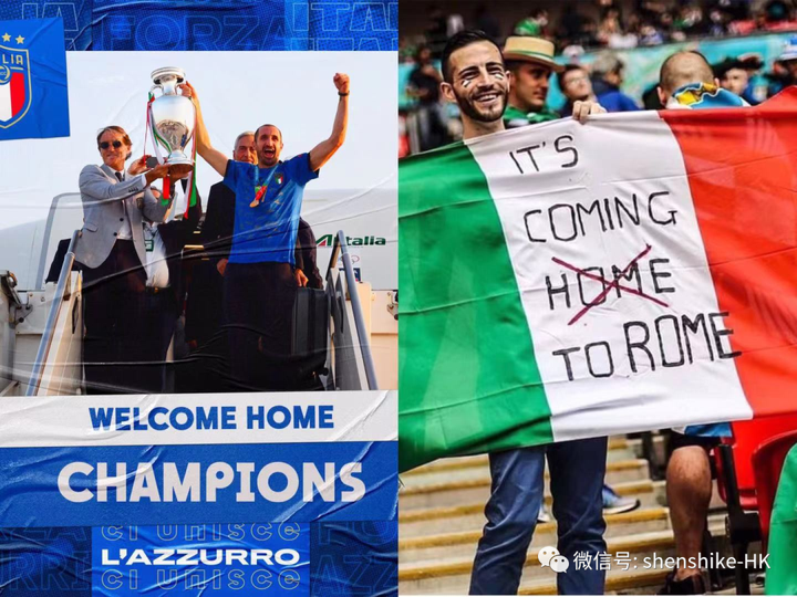 那边梅西率领阿根廷队夺得美洲杯,这边意大利踢走英格兰夺走欧洲杯。