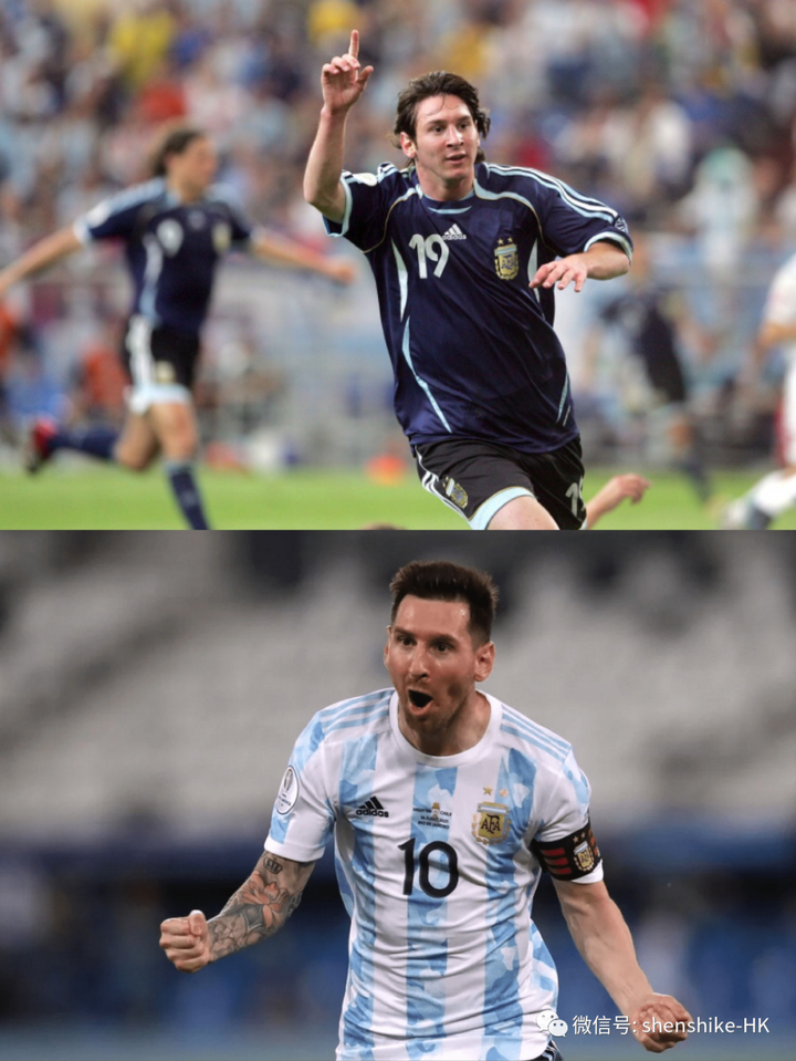 看梅西由青涩的少年、到配起队长的肩标、到变成有胡子的中年大叔,带着阿根廷队一次又一次地冲击美洲杯、世界杯。