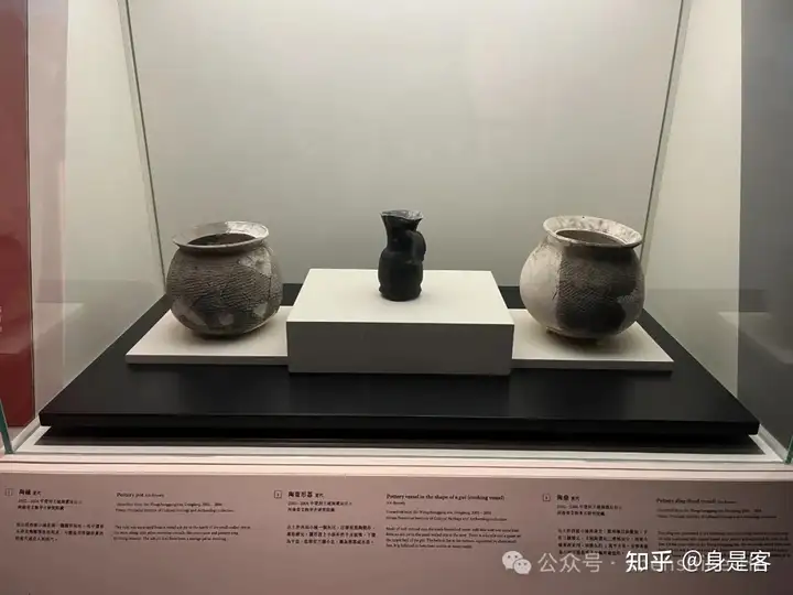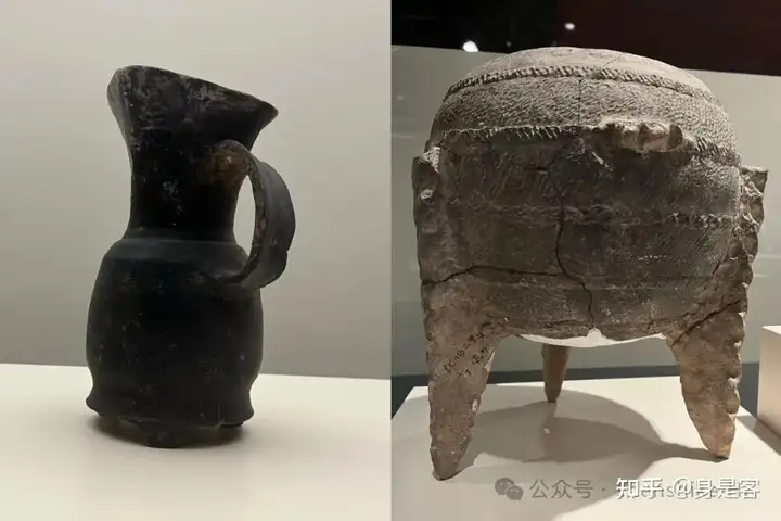 右:夏代的绳纹扁足陶鼎(1960年二里头遗址出土), 三足居然有花边, 如果技术可以, 夏朝人会用蕾丝吧?